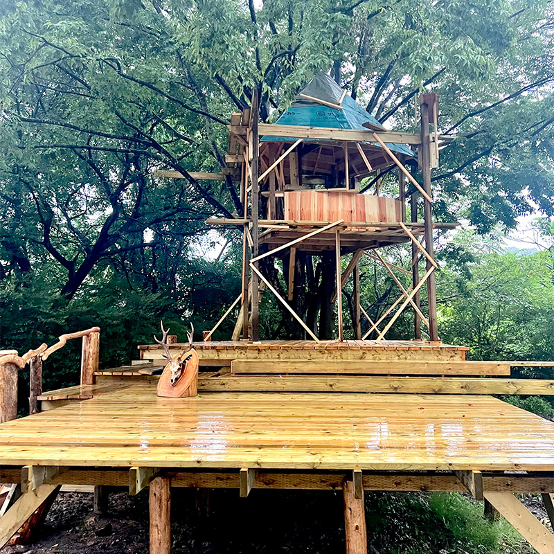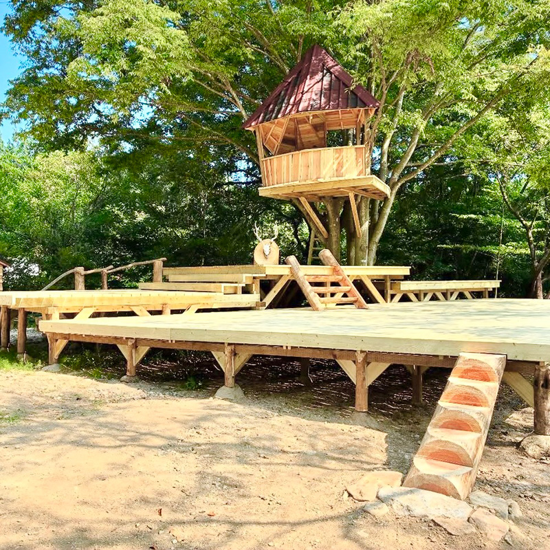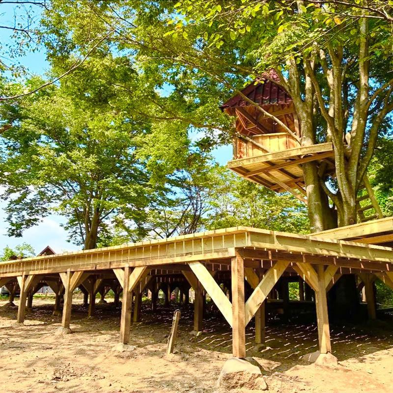 福井県前坂キャンプ場へデッキツリーハウス施工