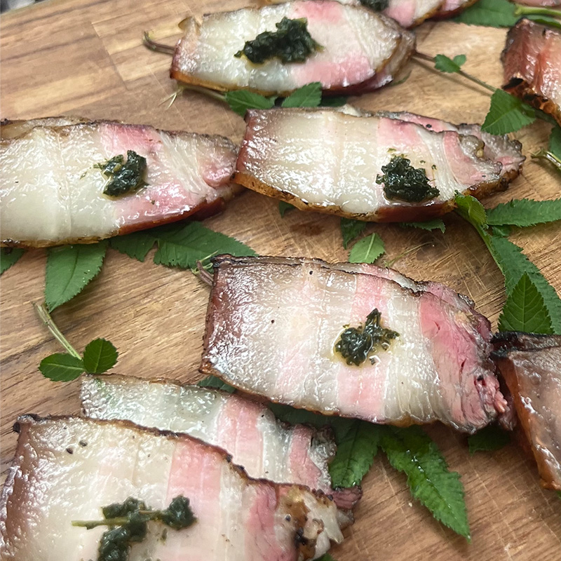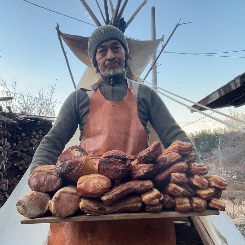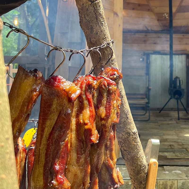 豚バラのベーコンに加え、今年はイノシシ&シカのジビエベーコンも作ります。