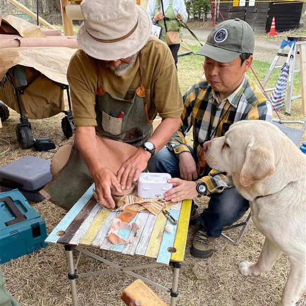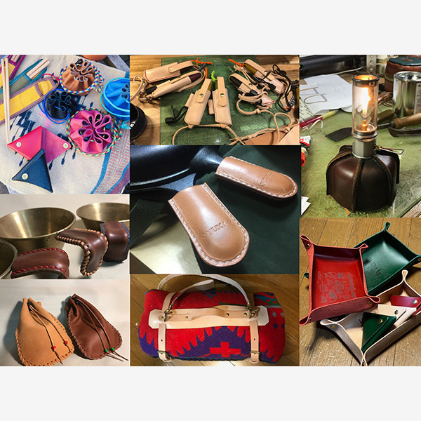 布、革、木と何でも縫って欲しいものを作って下さい。手持ちの道具や刃物にぴったりのカバーを作ったり自分のスマホにジャストフィットのポーチを作ったり何でも自由に作れます。