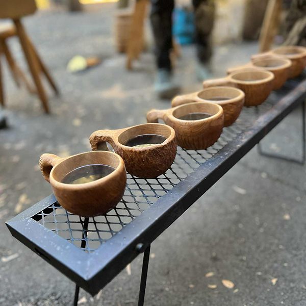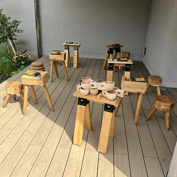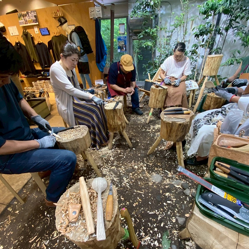 UPIの表参道店で発足した。グリーンウッドワーク集団。伐採木、倒木等の生木を斧やナイフなどの非電動工具を使ってカトラリー等の生活道具に再生しています!