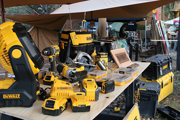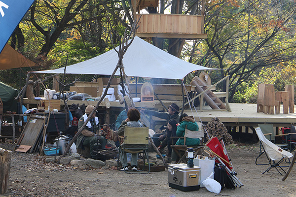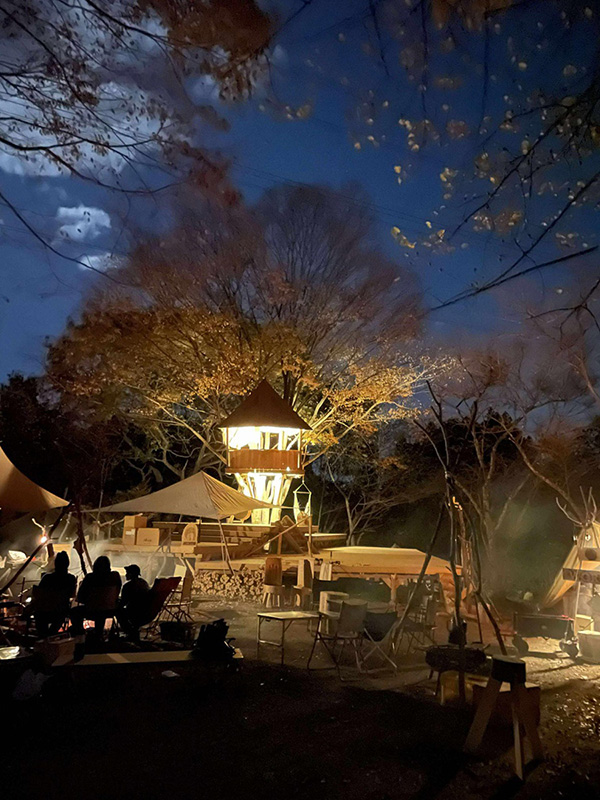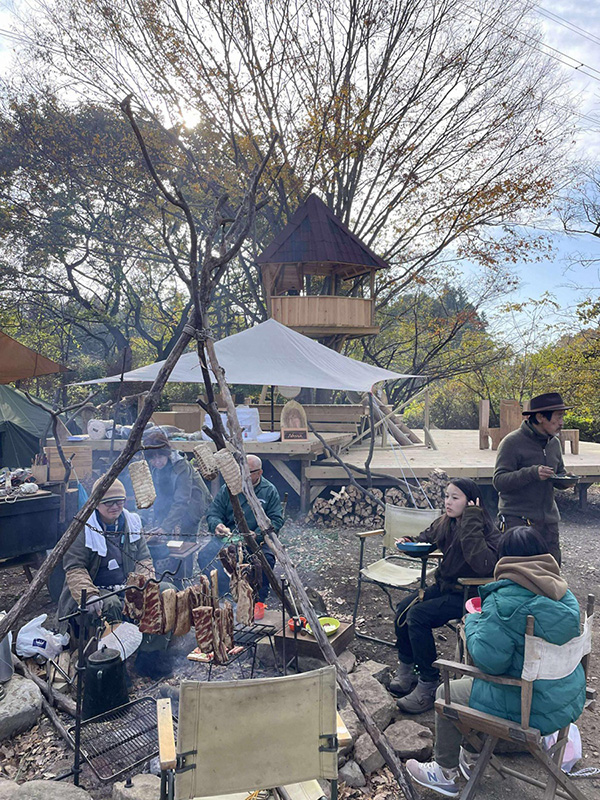 出展ブースエリアのコンテンツではナイフやノコギリなどの手工具から電動のドリルや丸ノコ、溶接機に至るまでの道具を使い、木材、自然素材、布、皮、金属等を惣菜とした体験ワークショップが出展。各種道具のメーカーブース、自走式サウナや地元フードカーもやってきます。イベントでは長野修平焚火料理をライブクッキング。定番焚火ベーコンはじめイノシシやシカのジビエベーコンも登場し、焚火にあたりながらそれらをつまみなに語らい合いましょう。 会場となるキャンプ場は今年8月にオープンしたばかりのNASU DLOVER。ここには長野修平らのBuilder unit HAMMERSが完成させたばかりのツリーデッキハウスがあり、それをメインステージとしてHAMMERSがこの1年で作った台湾の小屋や3つのツリーハウスの製作ドキュメントをメンバーのライブトークと合わせてスライド上映もします。
