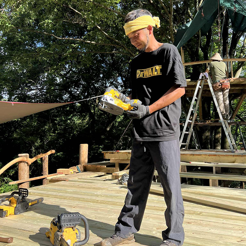 2024年台湾ドームハウス、 2025年の長野修平裏山ツリーハウス・福井県前坂キャンプ場ツリーハウス、そして今会場NASU CLOVERのデッキツリーハウス。その製作工程の写真から裏方秘話までを写真とトークで