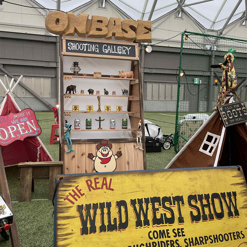 木製マルチスタッキングベンチ & 子供から大人まで楽しめる射的(ON BACE)