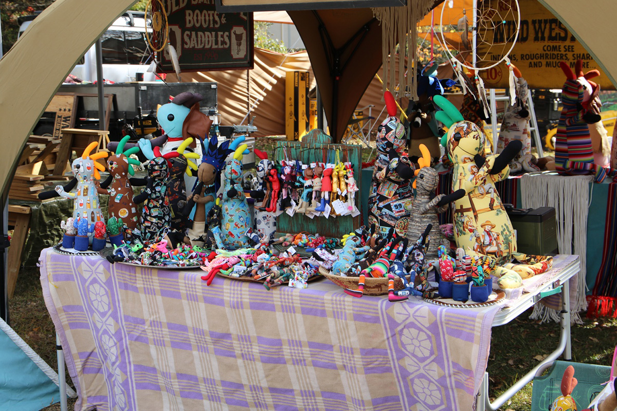 竹おかん二人の手作り作品も販売。ワークショップでは竹を使ったミニほうき作りも追加予定です。