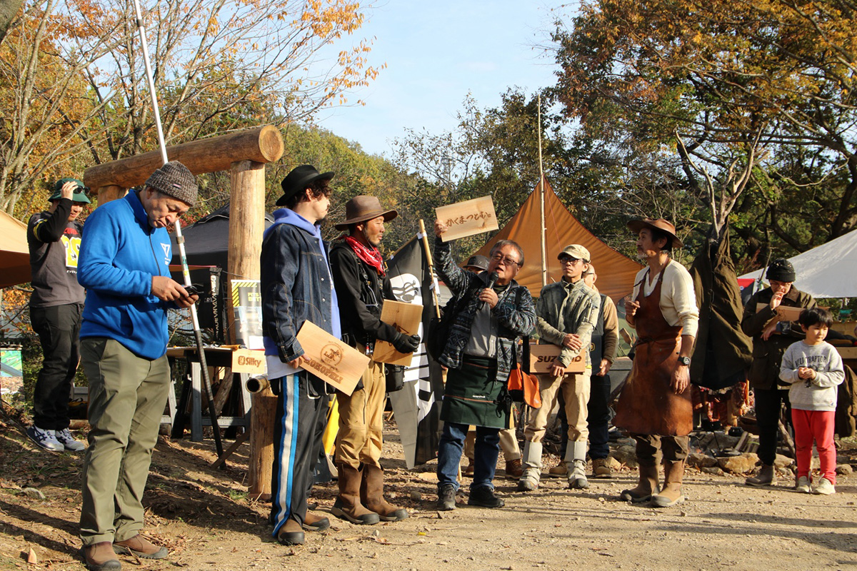 8日土曜日の参加者受付付けでコンテストにエントリーされた方全員を対象とした自作ギアコンテスト。昨年は自作のテントからイス・テーブル、オリジナルオカモチなど感動の作品が多数。今回は長野修平賞、dopa賞、tent-Mark DESING 賞の3カテゴリー。スライドトークの前か後で発表&授賞式&賞品贈呈。