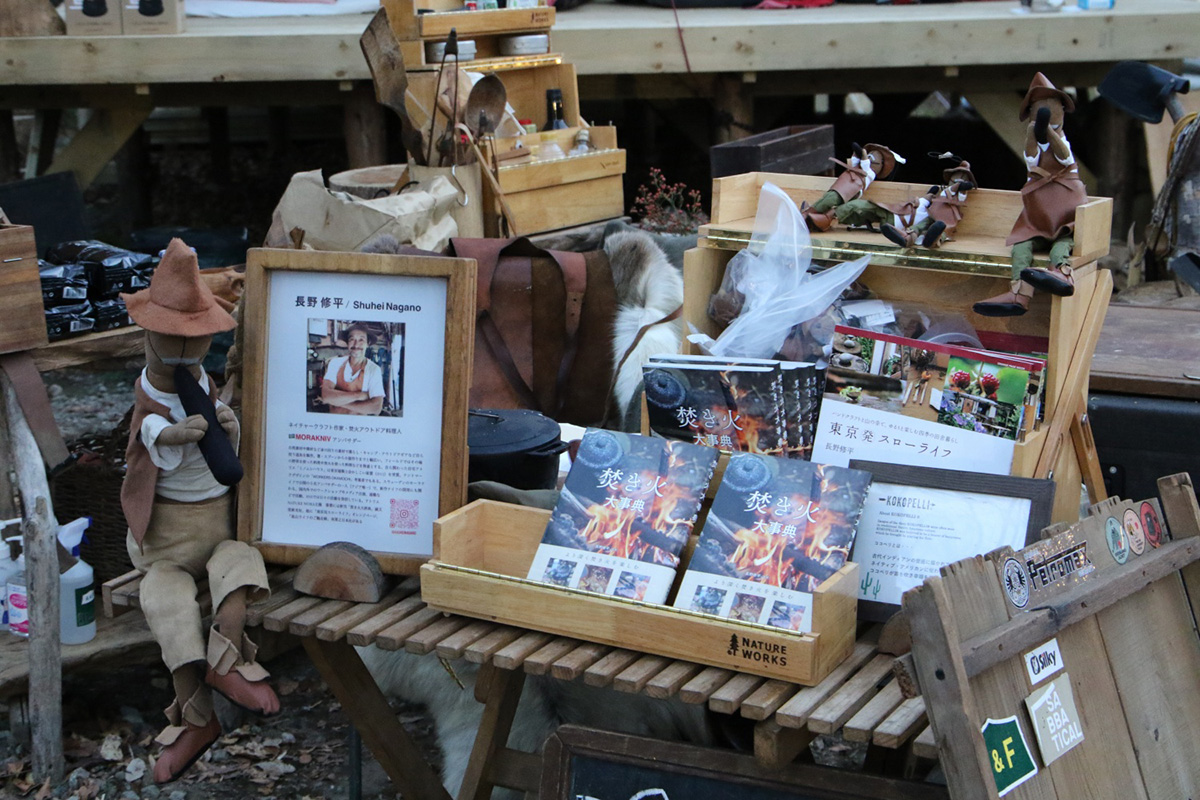 tent-Mark DESINGとのコラボで2014年に発売したWOERKERS OKAMOSHIは彼の焚火料理をはじめとしたアウトドアクッキンツール必須ギア。今回は昨年「焚き火大事典」成美堂出版を監修した長野修平の定番“焚火ベーコン”をはじめアンバサダーを務めるスウェーデンのアウトドアクッキングブランドDALUMのグリドル&パンケーキなどを、独自のトークとともに。希望者には焚火料理の体験(手伝い?)も!