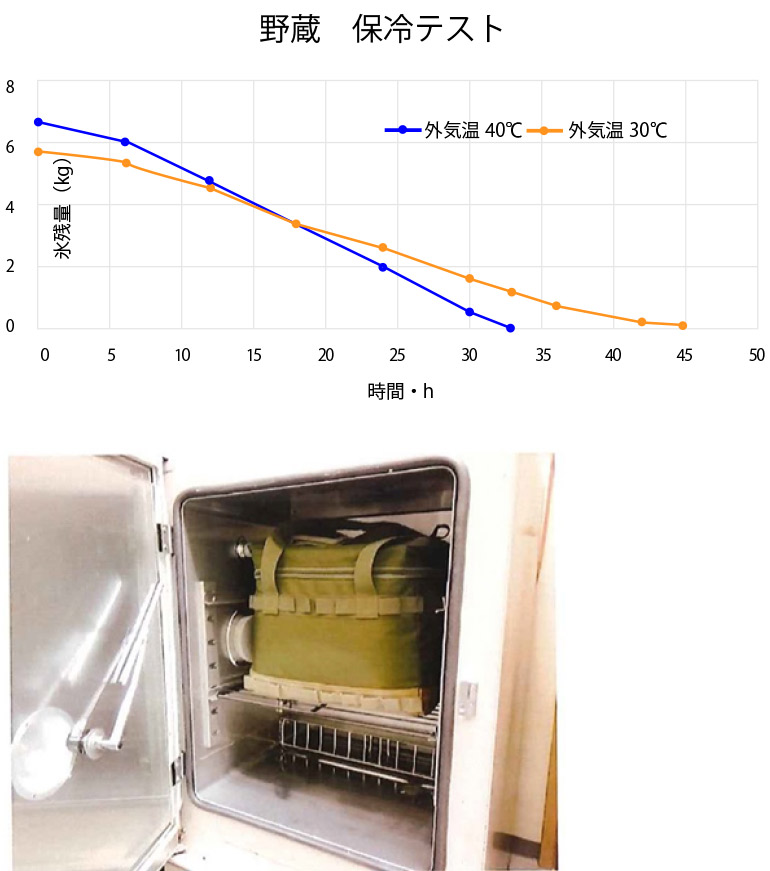 外気温 30度 | (約)45時間 の保冷 (45時間は14時に氷をいれれば2日後の11時まで持つ計算です) |