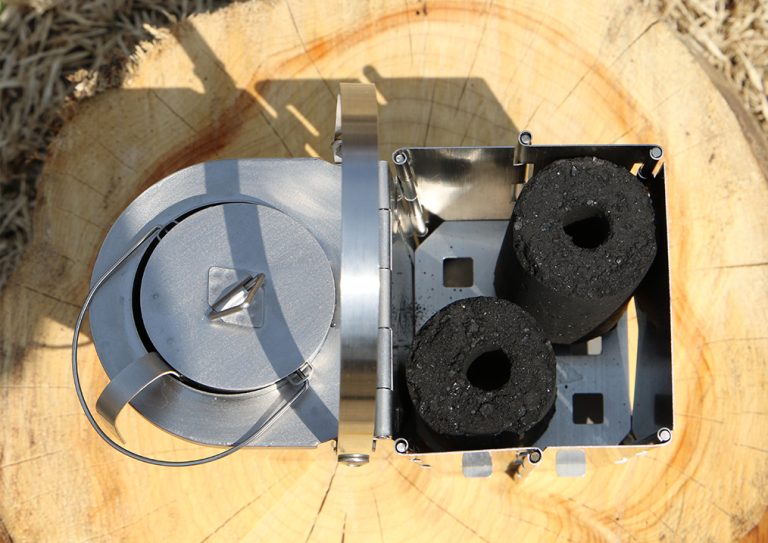 網の下に炭をいれて、本体に水を入れれば水が温まりお燗ができます。