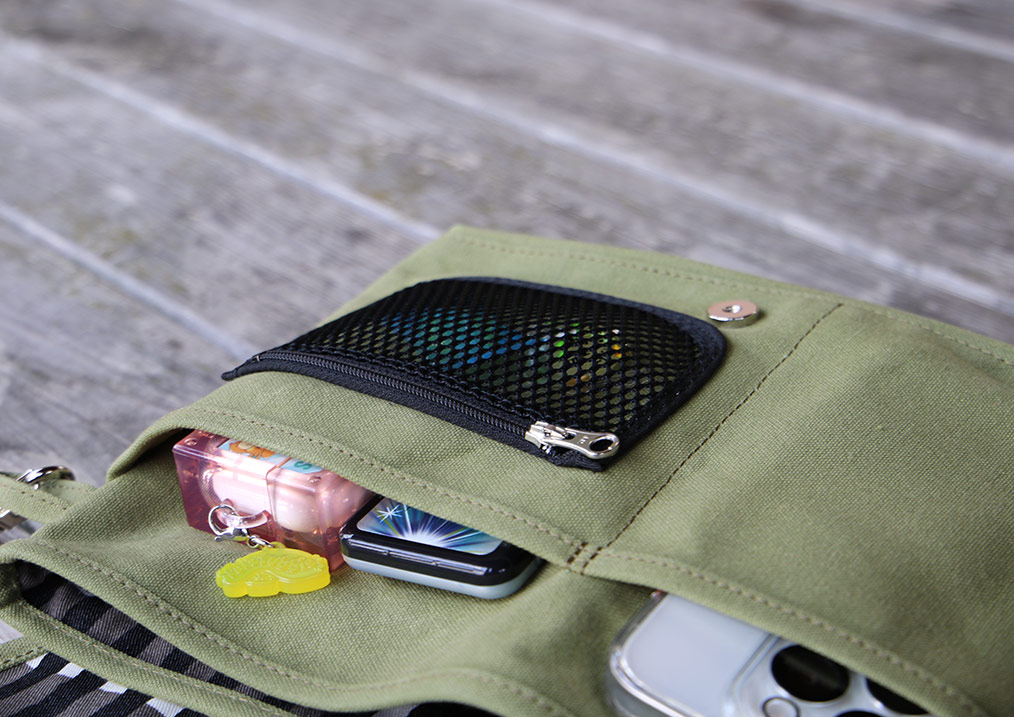お賽銭が見えやすく取り出しやすいメッシュポケットを配置。 - 想いに寄り添う素材選び
