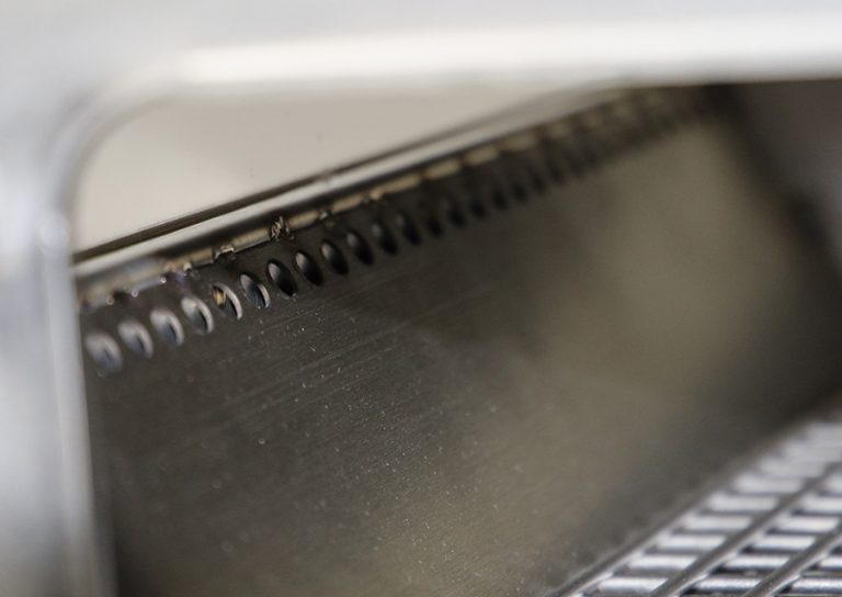サイドヴュー下には空気を取り込む穴があり、効率的な二次燃焼を実現。